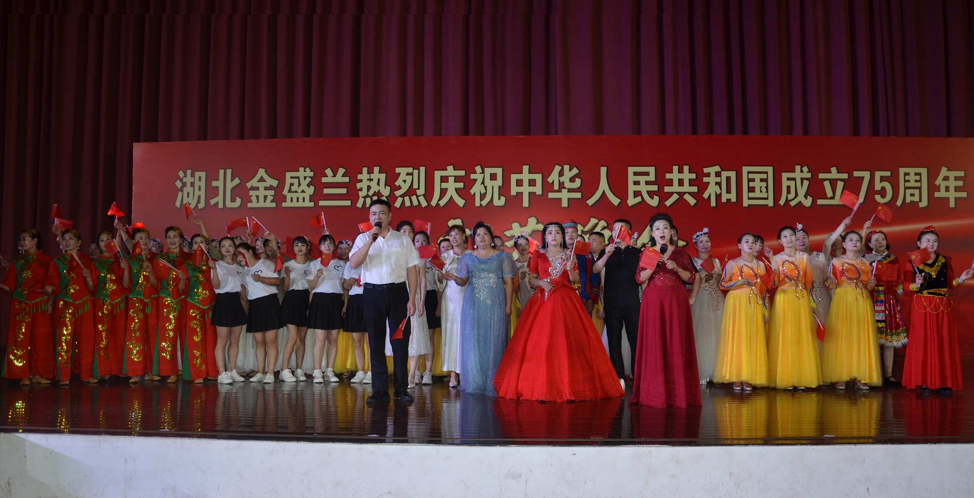 流金歲月,春華秋實!在舉國歡慶新中國成立75周年之際,9月28日晚,湖北金盛蘭冶金科技有限公司干部員工齊聚一堂,以歌傳情、以舞寫意,用豐富多彩的文藝節(jié)目禮贊祖國華誕。